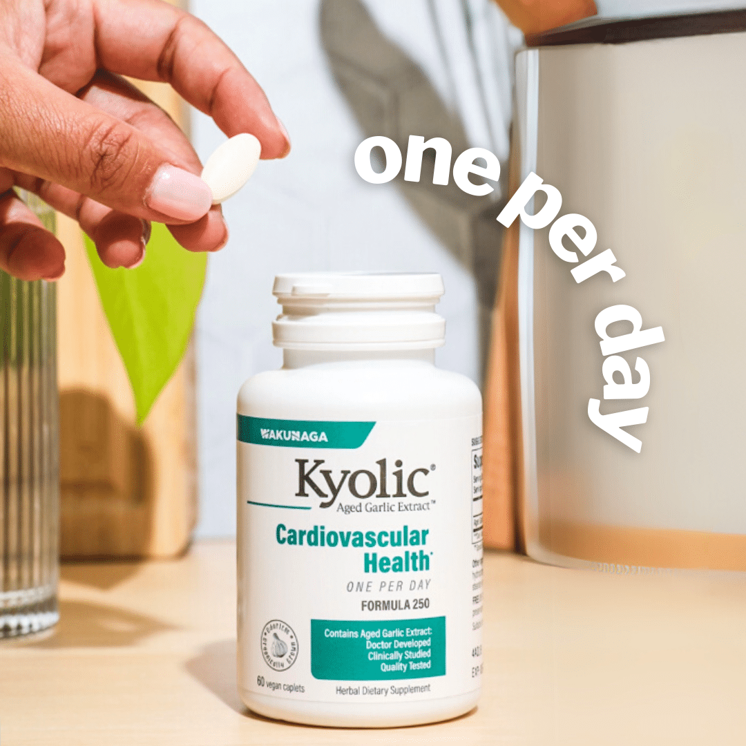 Kyolic® Aged Garlic Extract for Cardiovascular Health One Per Day contains 1000 mg of AGE per serving (1 caplet; Recommend one serving per day). One vegan caplet per day can help maintain healthy cholesterol and homocysteine levels, already in normal range. Our highest potency formula makes it even more convenient to support your cardiovascular system by maintaining circulatory function and overall heart health.*